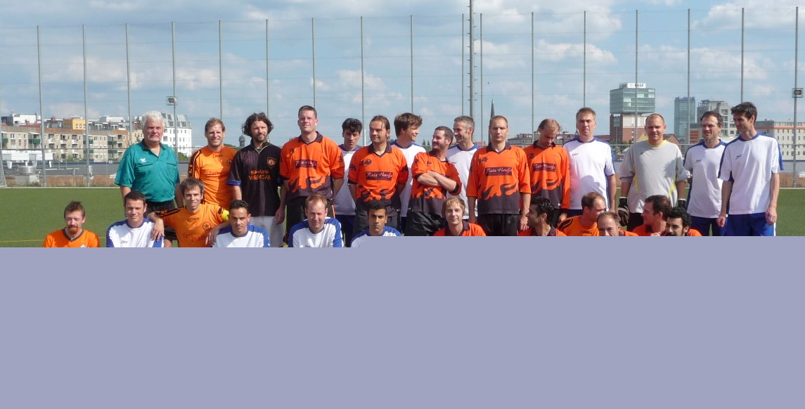 Beim ersten Spiel der Ü32 gegen SV Treptow, einen Absteiger aus der Senioren-Landesliga, war das Ergebnis natürlich zweitrangig. Nach zwei guten Trainingseinheiten war es ein erstes Kennenlernen auf dem Platz mit vielen neuen und einigen altbekannten Gesichtern. Die ersten wichtigen Erkenntnisse: 1. Der Platz ist groß. 2. Es ist noch viel zu tun in allen Bereichen. 3. Da kann was Gutes zusammenwachsen. In der ersten Hälfte war es von der Chancenverteilung her ein ausgeglichenes Spiel, in der zweiten nahmen die Treptower, die sich als gewiefte Taktiker mit ein paar U25-Spielern verstärkt hatten, die Kontereinladungen dankend an. Wir bedanken uns bei den netten Gästen für das faire Spiel und freuen uns schon auf ein Wiedersehen. Hier das Foto der Mannschaften vor dem Anpfiff: