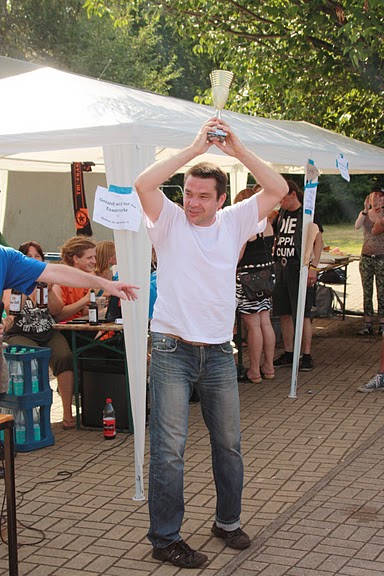 Jürgen, Schütze vom “Tor des Tages”, mit dem Pokal für Pulmon Negro, dem Sieger des Turniers der “Erfahrenen”. PrevNext