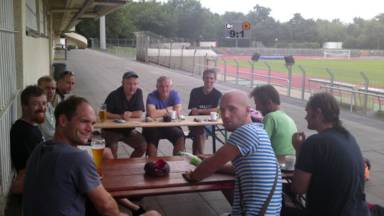 Die Ü32 nach dem Pokalspiel im Mommsenstadion, wo zwar nicht gespielt wurde, aber sich die Umkleidekabine in den Katakomben befand.